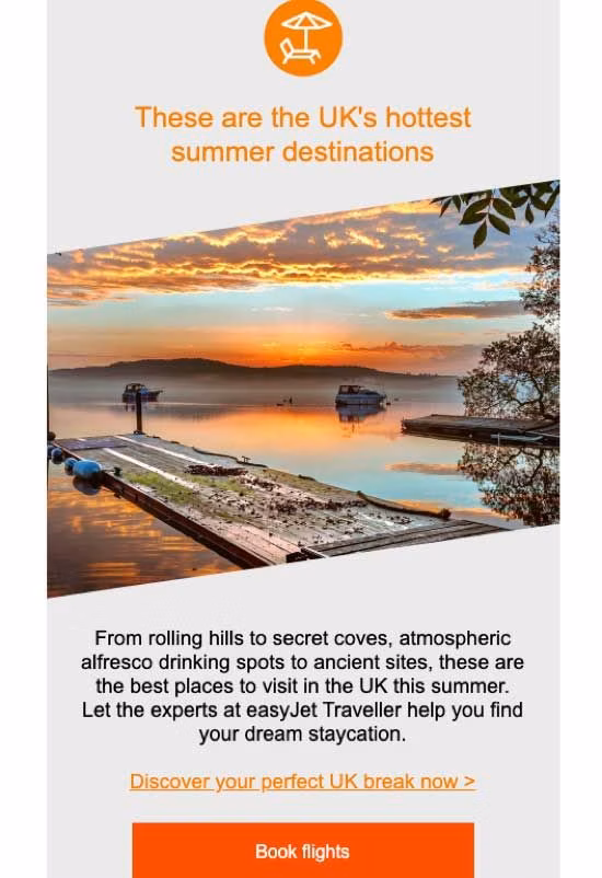 It can also be a less obvious occasion such as the beginning of spring or summer – for some companies, such as travel companies or airlines – summer would be a great occasion to get in touch with subscribers. Look at this newsletter from EasyJet, which makes you want to go on a holiday right away.