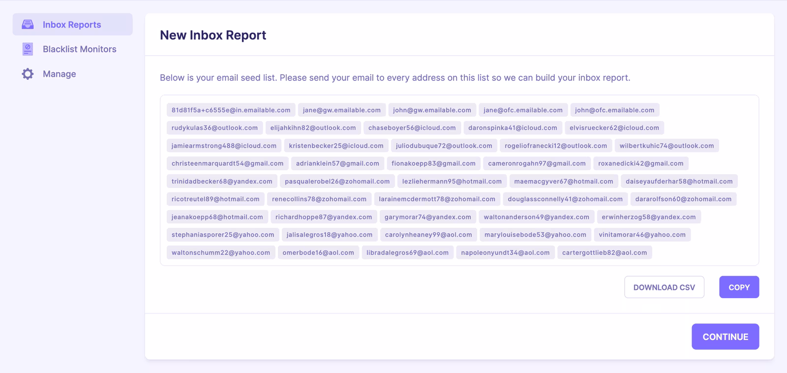 Inbox reports give you a comprehensive report on key metrics that impact your email deliverability. With the inbox reports you’re able to see: