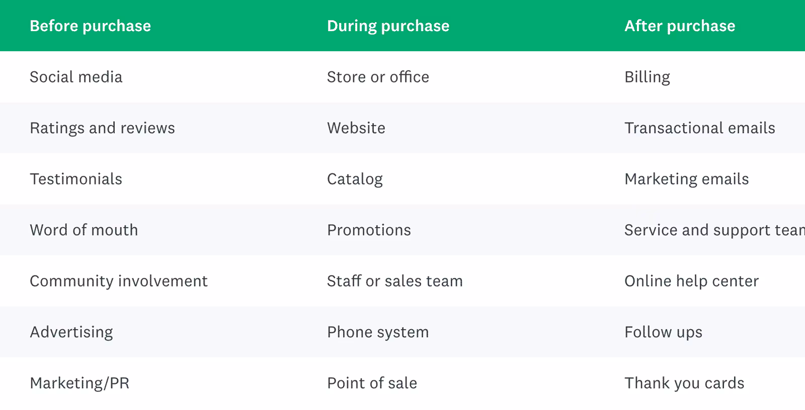 Let’s go old school and get out your pen and paper and map out a time timeline that lays out every single step of the customer experience. These steps, touchpoints, that we mentioned earlier are every step your customer takes to reach your brand. Whenever a customer comes in contact with your brand.